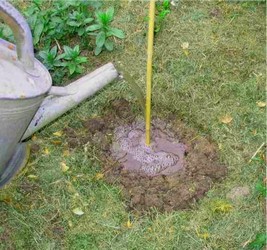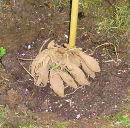 Les tubercules sont à recouvrir de terre sur 5 à 8 cm, en ménageant une petite cuvette pour maintenir par la suite l’eau d’arrosage. Une plantation trop profonde risque de fatiguer le tubercule pour sa sortie de terre, une mise en place à fleur de terre provoque le dessèchement du bulbe.