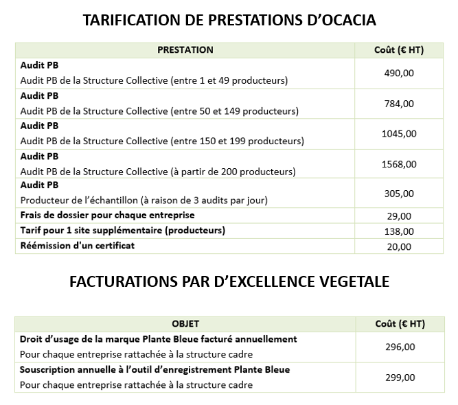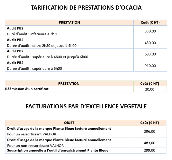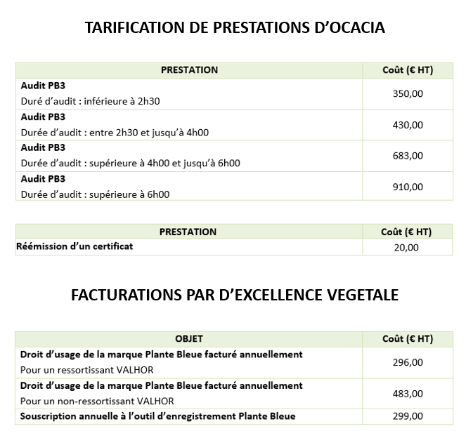 La certification Plante Bleue 2 est valable sur 3 ans et repose sur deux types de coûts :